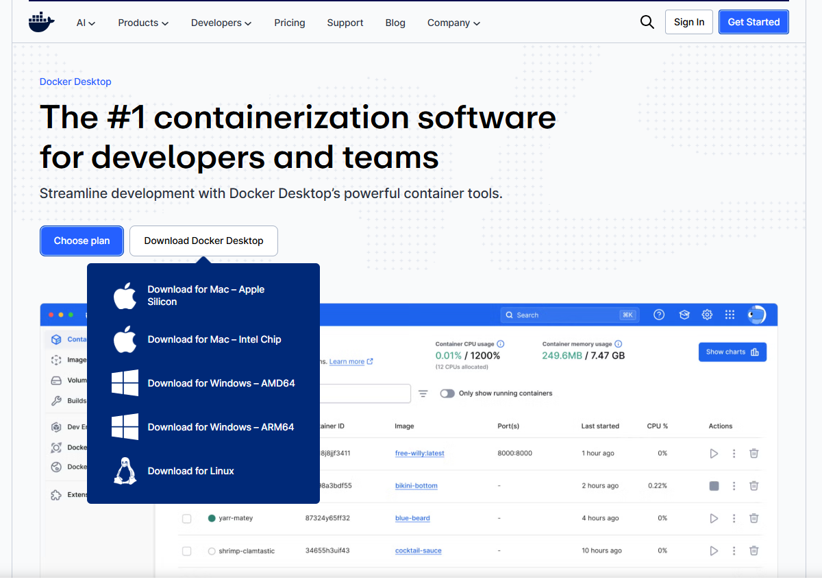 Docker Desktop is collaborative containerization software for developers. Get started and download Docker Desktop today on Mac, Windows, or Linux.