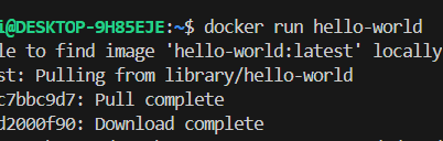 터미널에 docker --version ( docker 버전확인) docker run hello-world(메시지 출력) 을 입력하여 설치 확인할수 있다.