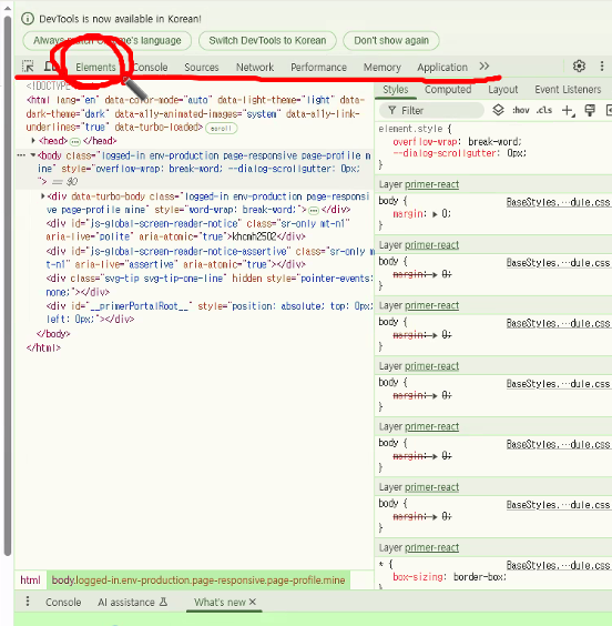 F12 키를 누르면 해당 페이지가 HTML태그로 구성되어 있다는 것을 알수 있다.