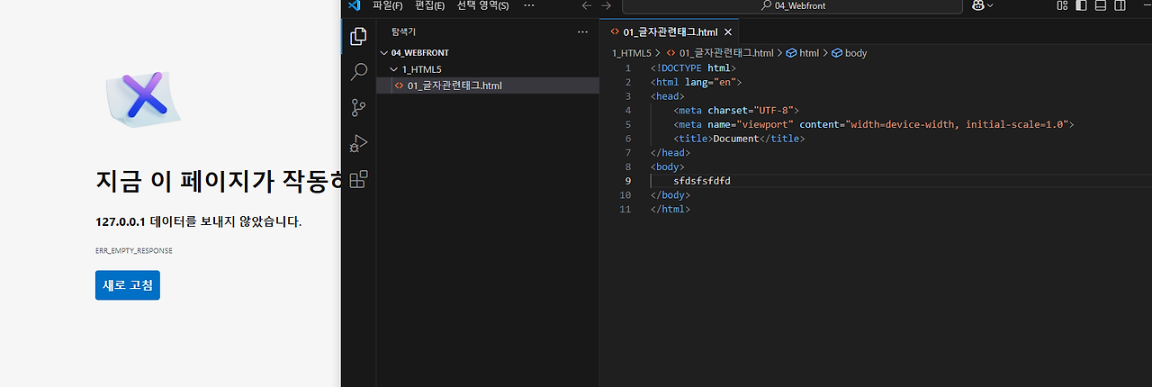 - 파일 확장자는 반드시 html 또는 htm으로 설정
