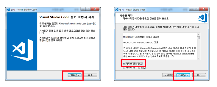 라이선스 계약 동의, 바탕화면 바로가기 만 누르고 나머지는 다음 누르면 된다.