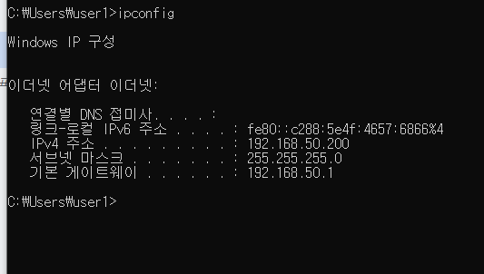 즉시 Cmb 창으로 이동하여 IP를 확인한다. -> ipconfig 입력
